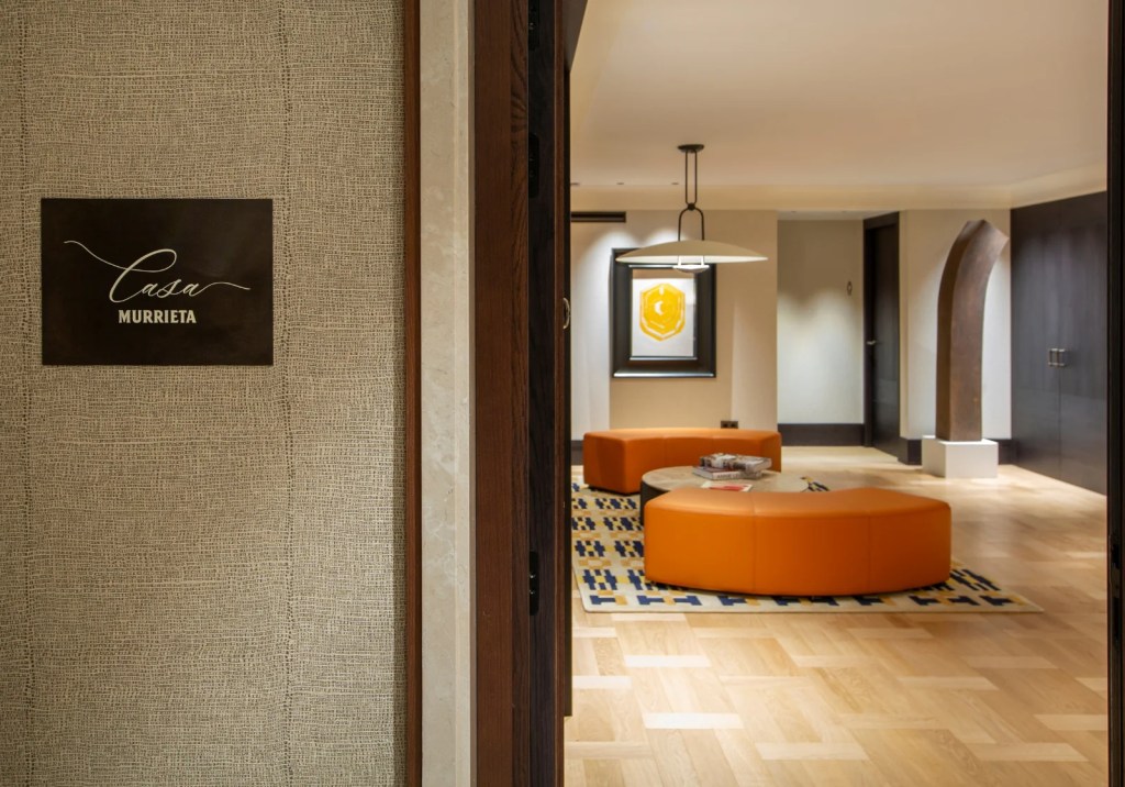 Situada en el Paseo de la Castellana, Casa Murrieta se presenta como un templo del vino y el diseño, con más de 1 000 m² dedicados a experiencias premium. El espacio social —uno de los protagonistas del proyecto— incluye una cava espectacular, sala de catas, comedor elegante, salón privado y un amplio patio ajardinado concebido por el estudio Locus Landscape.